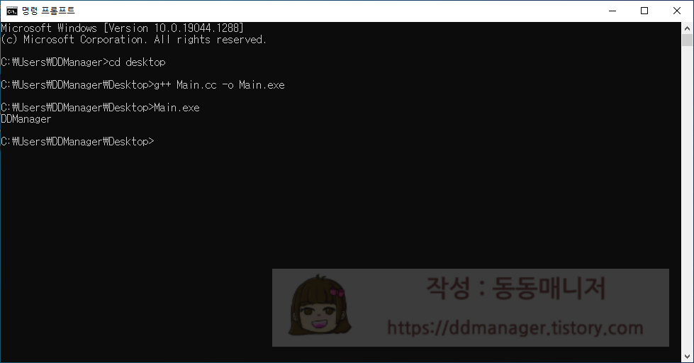 실제로 C++ 코드를 컴파일 후 실행하는 과정을 설명하겠습니다.